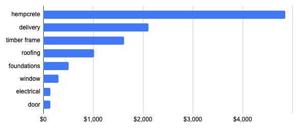 This is a very unusual breakdown of costs, largely because so much was salvaged or bought second hand: