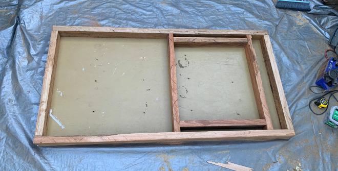 I don’t like spaces lit from only one direction, so I want the door to also be glazed. Luckily, I found a small double-glazed glass unit on Facebook Marketplace for $25 (it had been mis-ordered by a window company).
