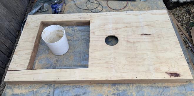 I lined the inside face of the door with plywood. It was salvaged from an old subfloor, a hefty 15mm thick. After sanding I gave it a couple of coats of lime wash.