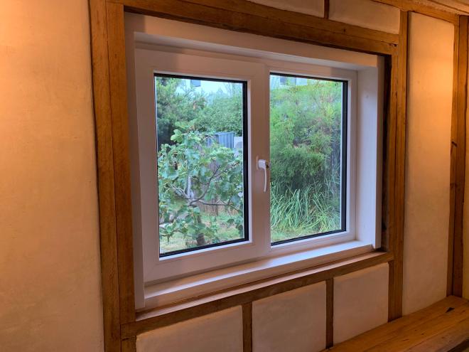 The advantages of uPVC windows can not be ignored. The frames are insulative, they seal properly against air leaks, and are low maintenance. When designing this building I asked a local manufacturer if they had any spare windows lying around. Sure enough they did, and I bagged a lovely 1200 x 900 mm tilt-and-turn for $300. Then I designed the wall frame to fit it.